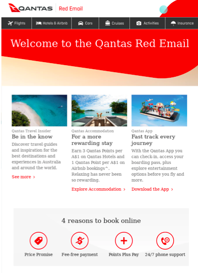 Qantas does this rather well. Right here is the welcome e-mail new subscribers obtain once they be a part of the Qantas Crimson program: